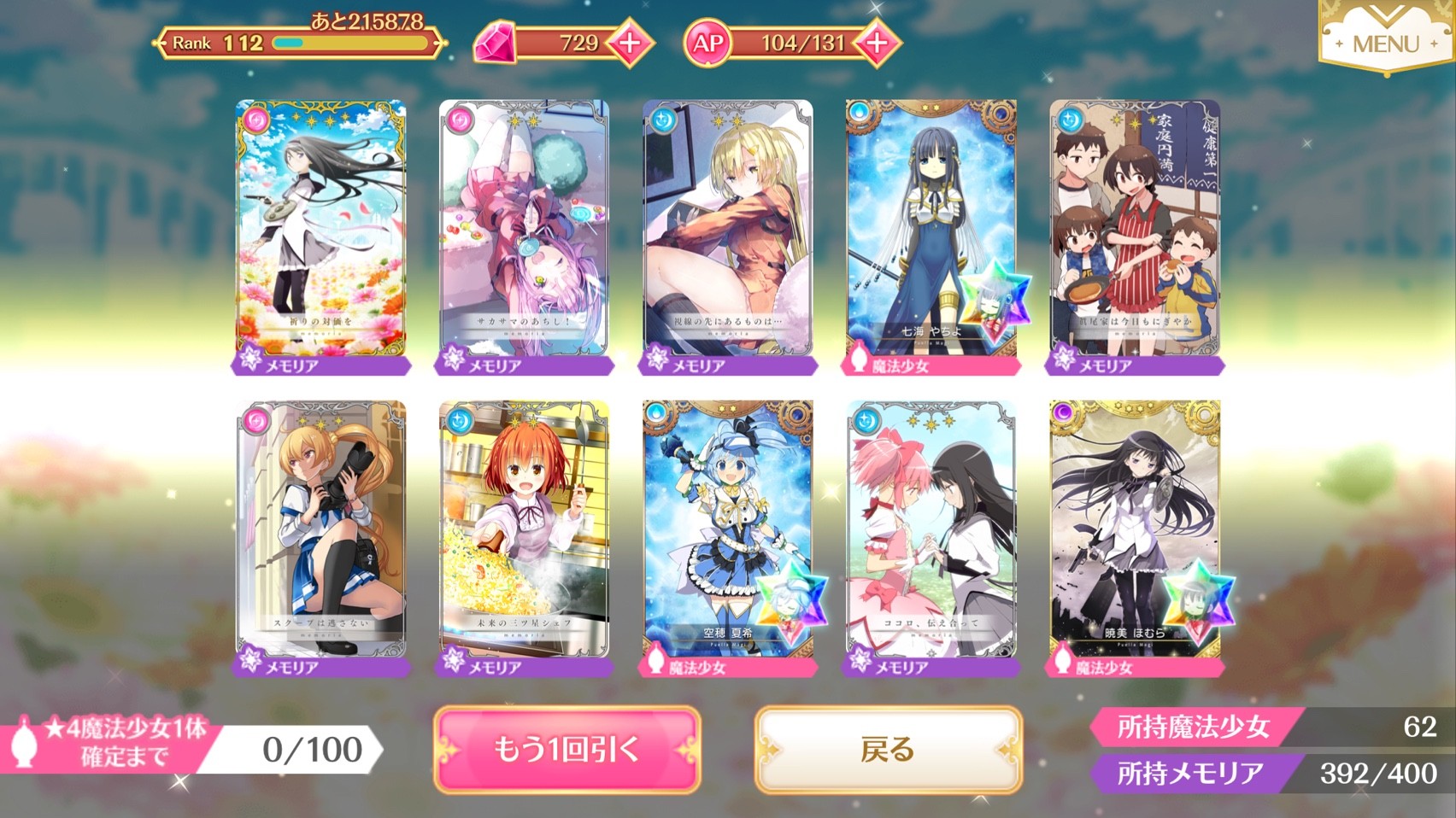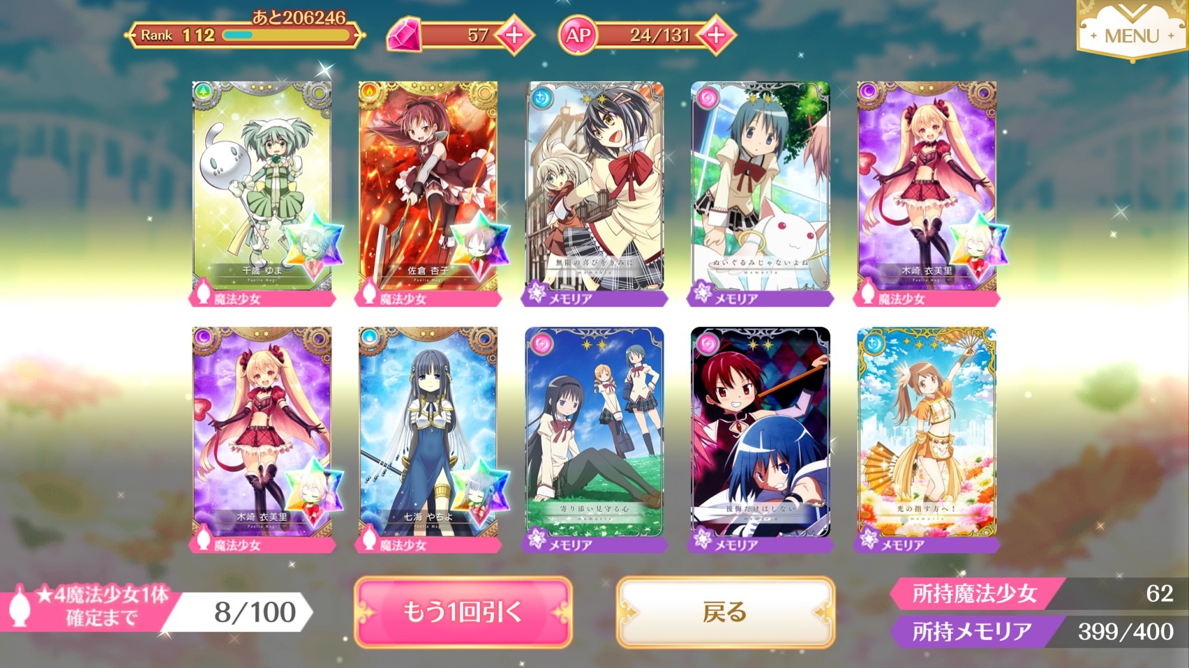 アルティメットまどか先輩「単発1回からの10連の最初、つまり2連目でいきなり星4がきたよ」